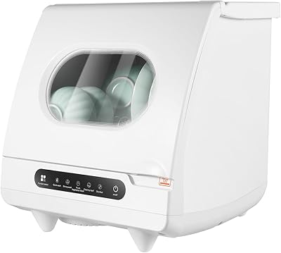 RustyVioum 1200W Portable Mini Countertop Dishwasher, 110V Table Top Dishwasher with 5 Wash Programs & Display, Freestanding Automatic Dishwasher for ApartmentOfficeKitchenRVS, White