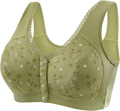 Plus Size Bras for Older Women Front Closure No Underwire Supportive Bras Push Up Bra Breathable Cotton Bra